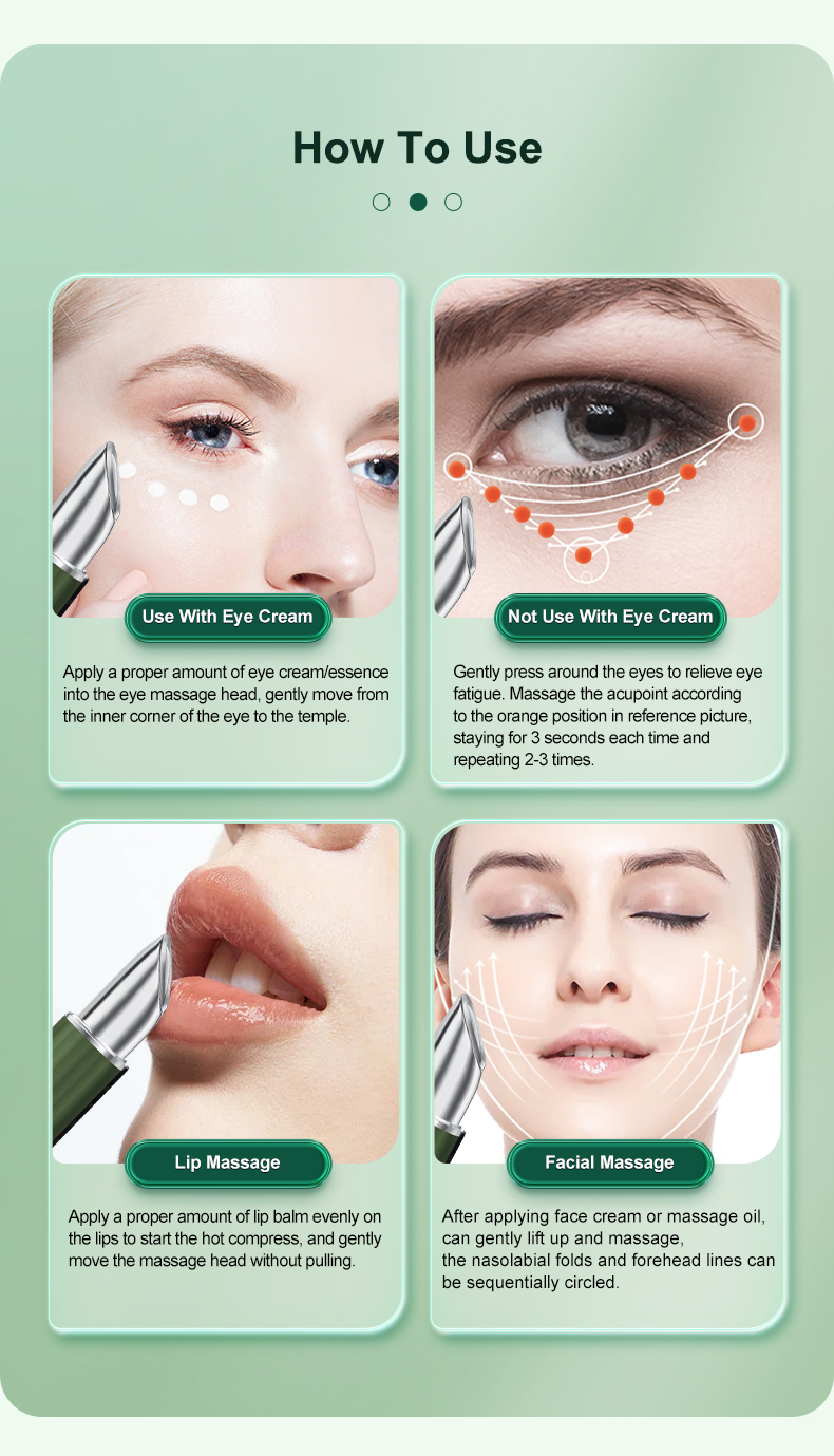 - Hot compress: Promote internal circulation, fade eye fine lines and dark circles