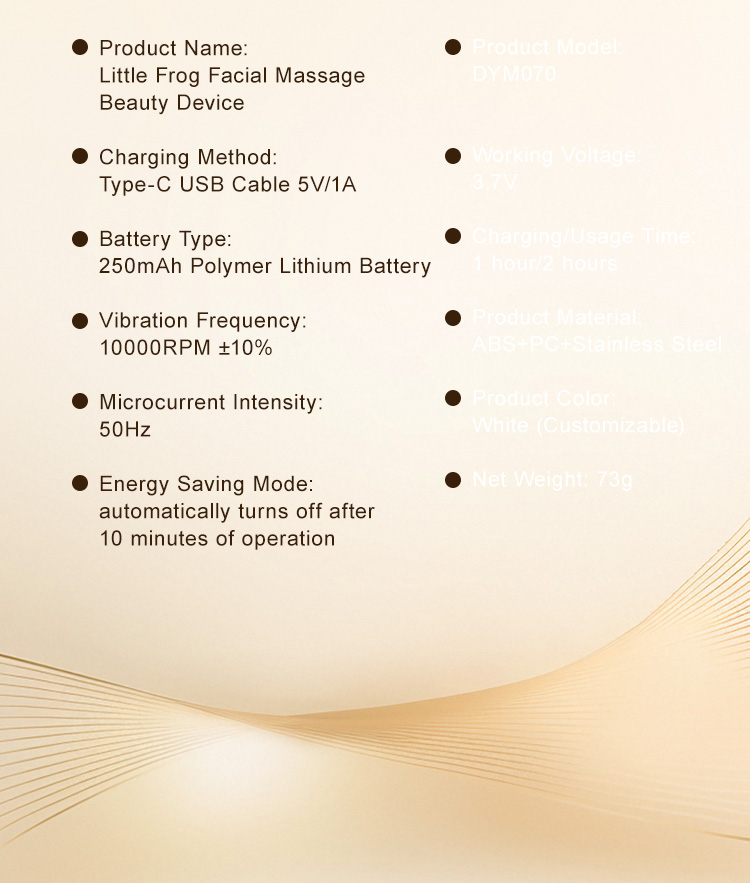 | Mode 5 | blue light+EMS 10V+vibration | 460-470nm EMS 10V 60% vibration | sensitive skin | after-sun repair |