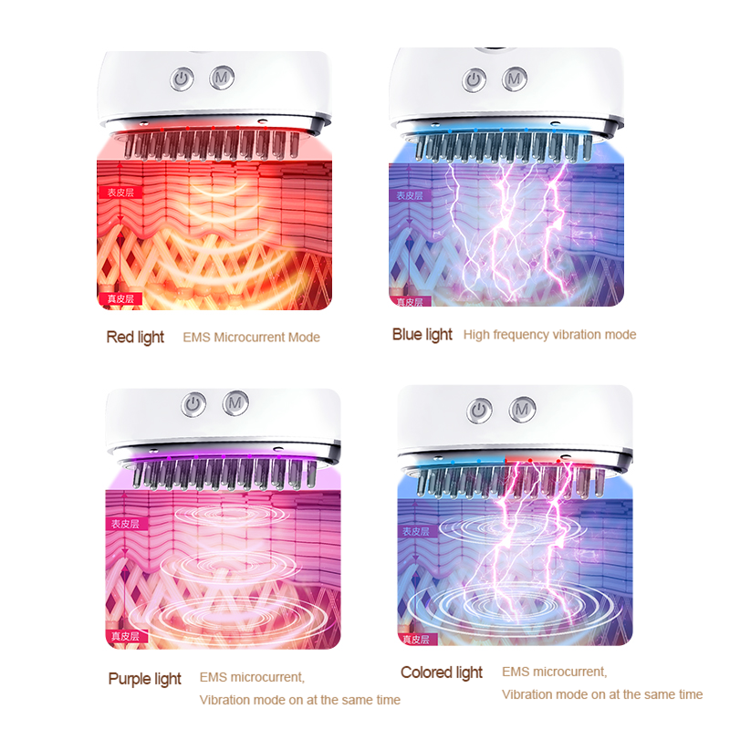 - Color light therapy: Red blue purple light, promotes circulation, anti-inflammatory and scalp protection