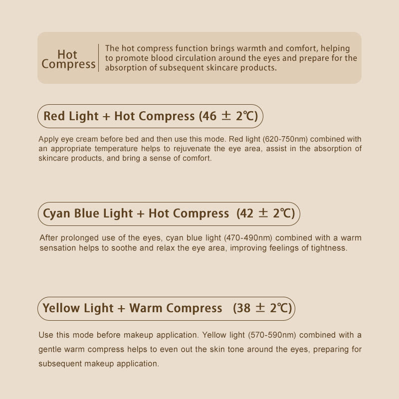 - 1. Red light(620-675nm)+hot compress(46+-2 centigrade degree)